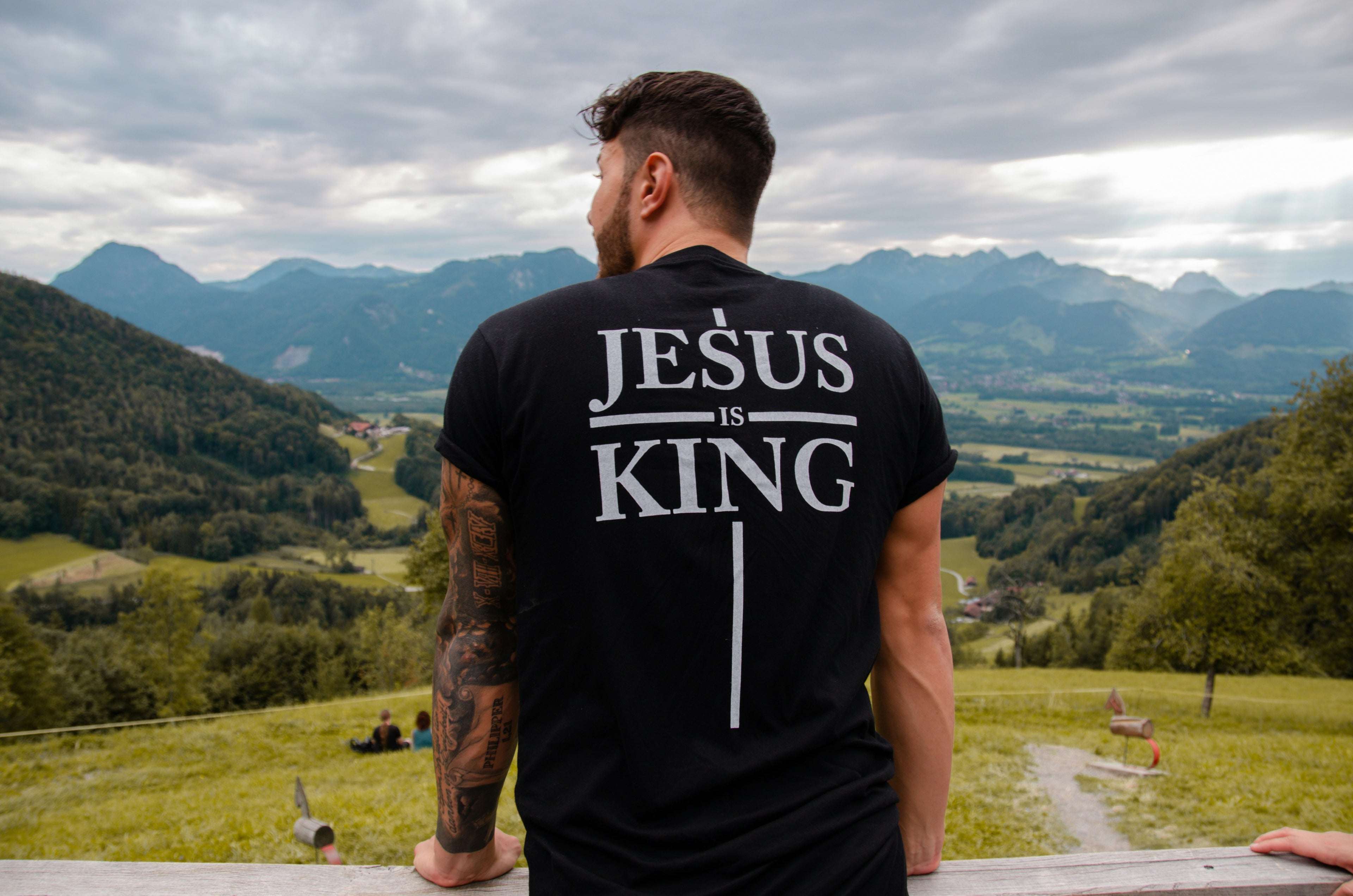 Jesus Is My Savior Embroidery T-Shirt with Sleeve Cross